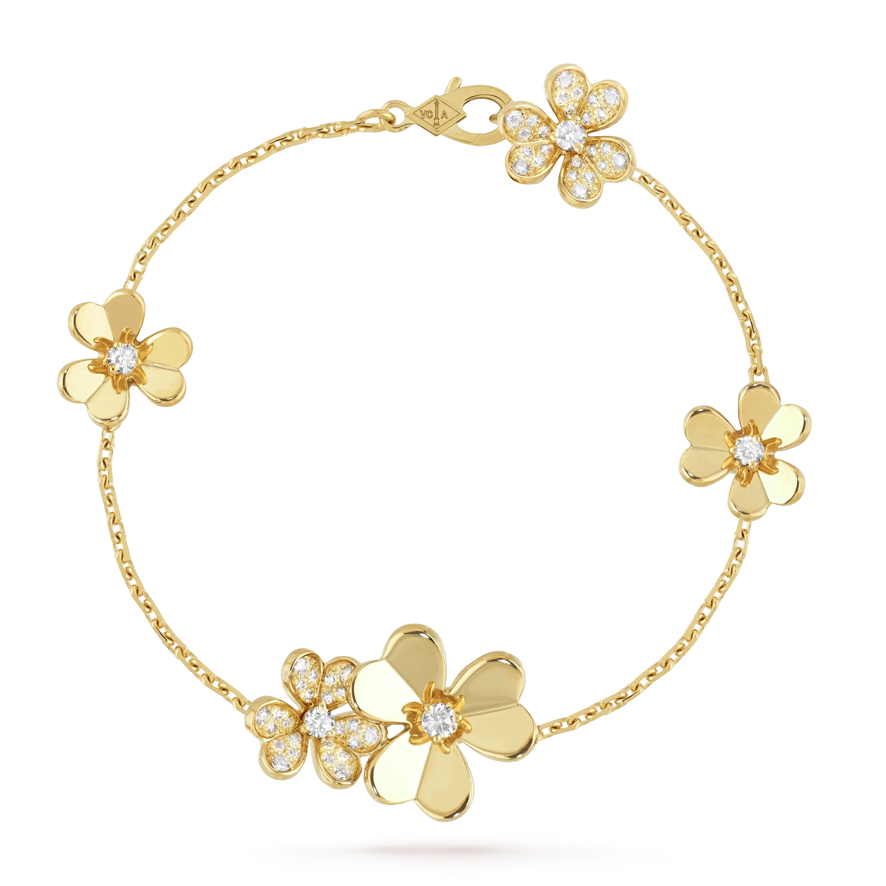 Frivole bracelet, 5 flowers, 18K yellow gold, round diamonds; diamond quality DEF, IF to VVS.