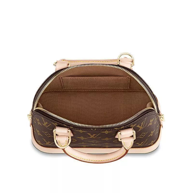 1934年に発表されたメゾンのアール・デコ調のバッグの特徴をそのまま受け継ぐ「アルマ BB」。アイコニックなモノグラム・キャンバスにゴールドカラーのパドロックとキー、2本のトロンハンドル、スマートなレザーのキーベルをあしらいました。取外し可能なストラップで、クロスボディバッグとしてもお使いいただけるチャーミングなアイテムです。