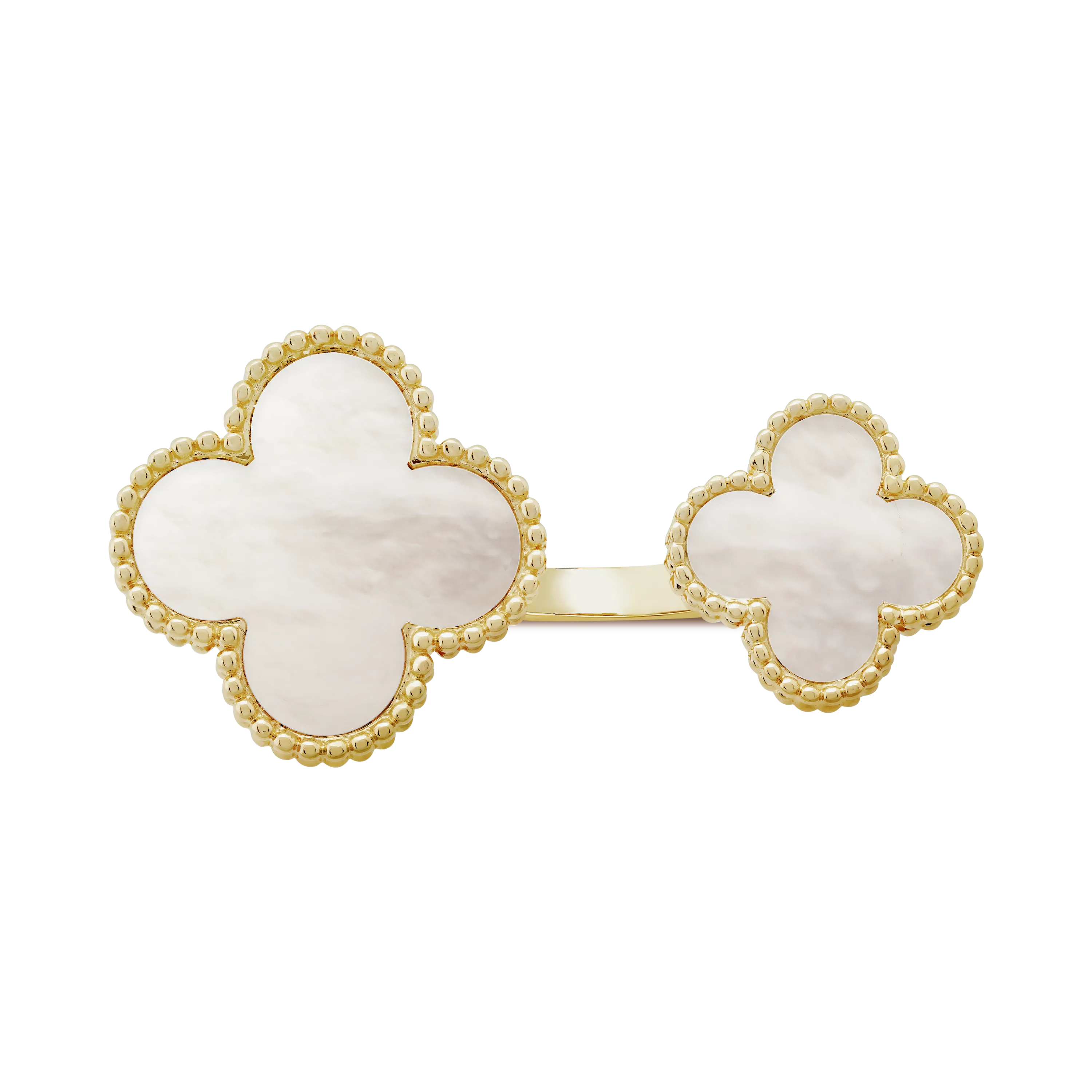 Magic Alhambra Between the Finger ring, 18K yellow gold, white mother-of-pearl.