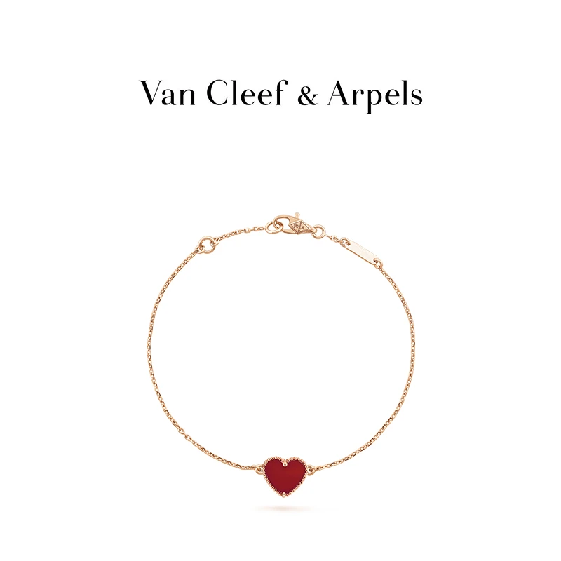 Sweet Alhambra heart bracelet, 18K rose gold, carnelian