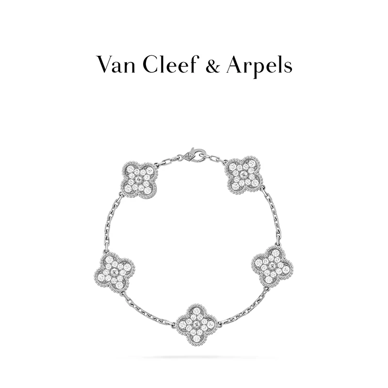 Vintage Alhambra bracelet, 5 motifs, rhodium plated 18K white gold, round diamonds; diamond quality DEF, IF to VVS.