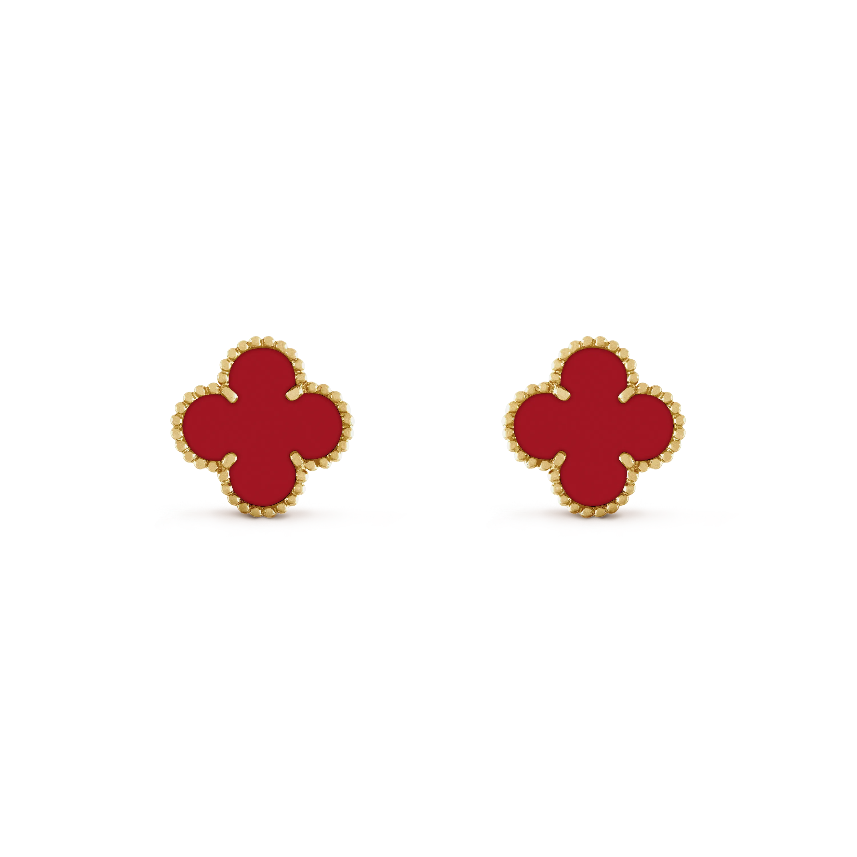 Vintage Alhambra earrings, 18K yellow gold, carnelian.