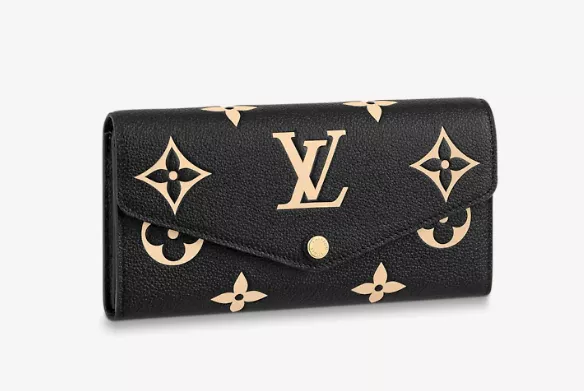 ルイ・ヴィトンの定番アイテムを、モノグラム・パターンのエンボス加工が美しいバイカラーのモノグラム・アンプラント レザーでエレガントに仕上げた「ポルトフォイユ・サラ」。ゴールドカラーのスナップボタンで開閉するエンヴェロップ型のフラップを開くと現れる、整理しやすい内装も魅力です。2つの大ぶりのコンパートメントに加え、16枚のカードを収納できるカードスロットや複数のポケットを備えています。