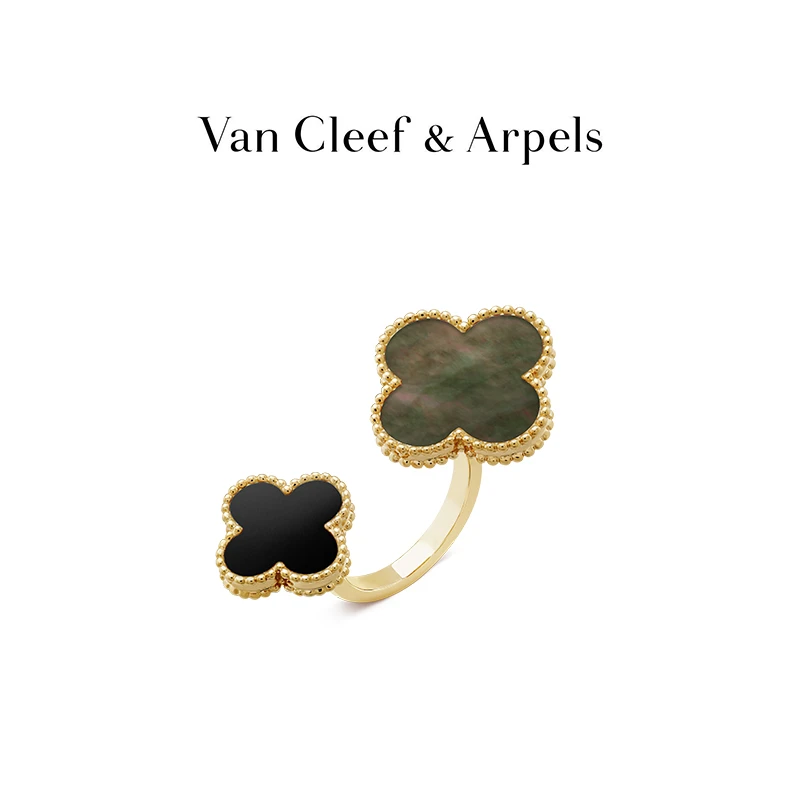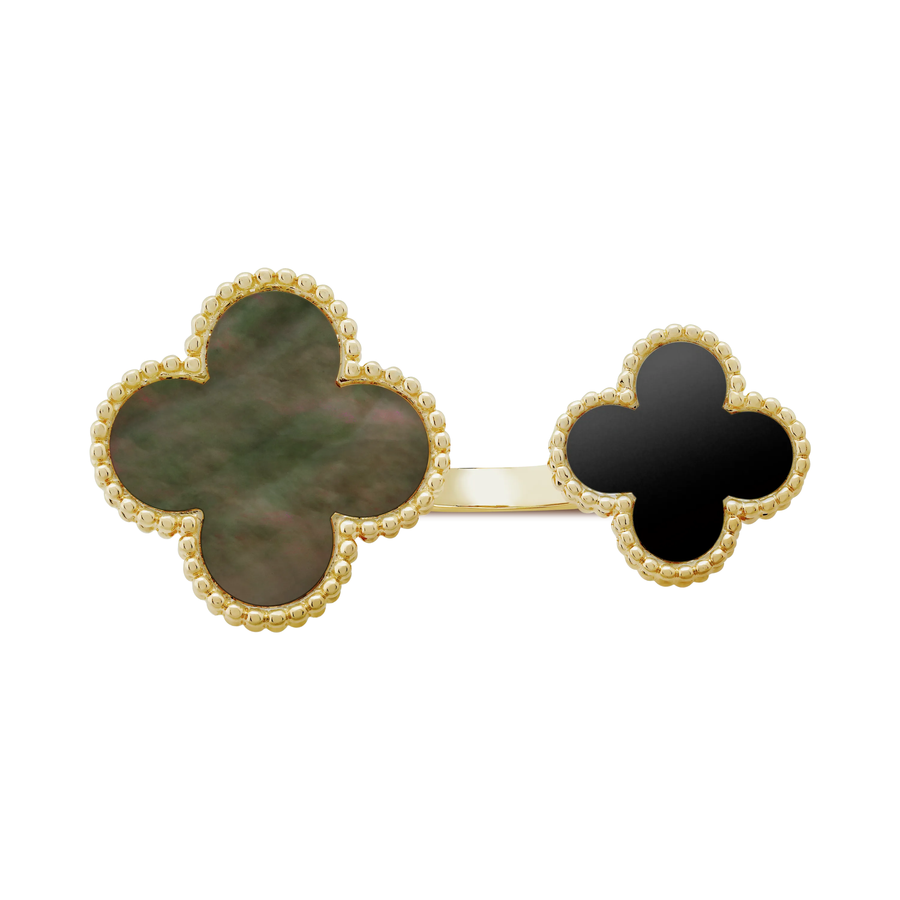 Magic Alhambra Between the Finger ring, 18K yellow gold, gray mother-of-pearl, onyx.