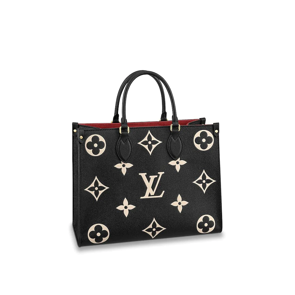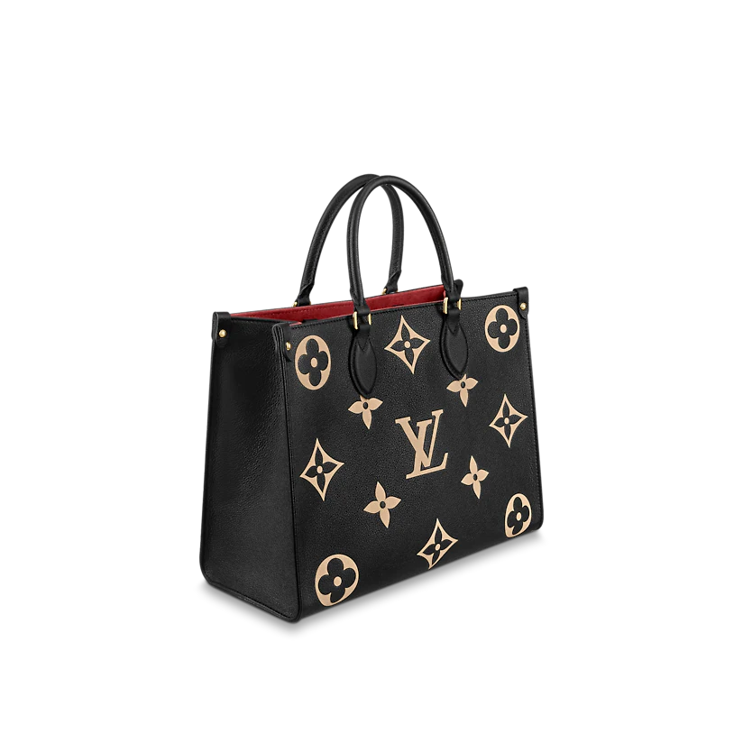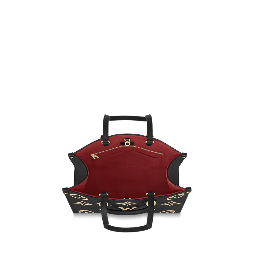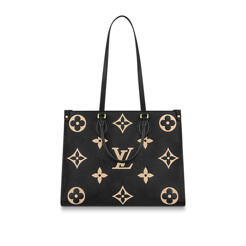 OnTheGoミディアムトートバッグは、最初にモノグラムパターンで印刷され、次に柔らかい木目調の牛革にエンボス加工されています。その十分な内部は、ラップトップやその他の事務用品を収容できます。長いハンドルと短いハンドルは、持ち運びや持ち運びが簡単です。
