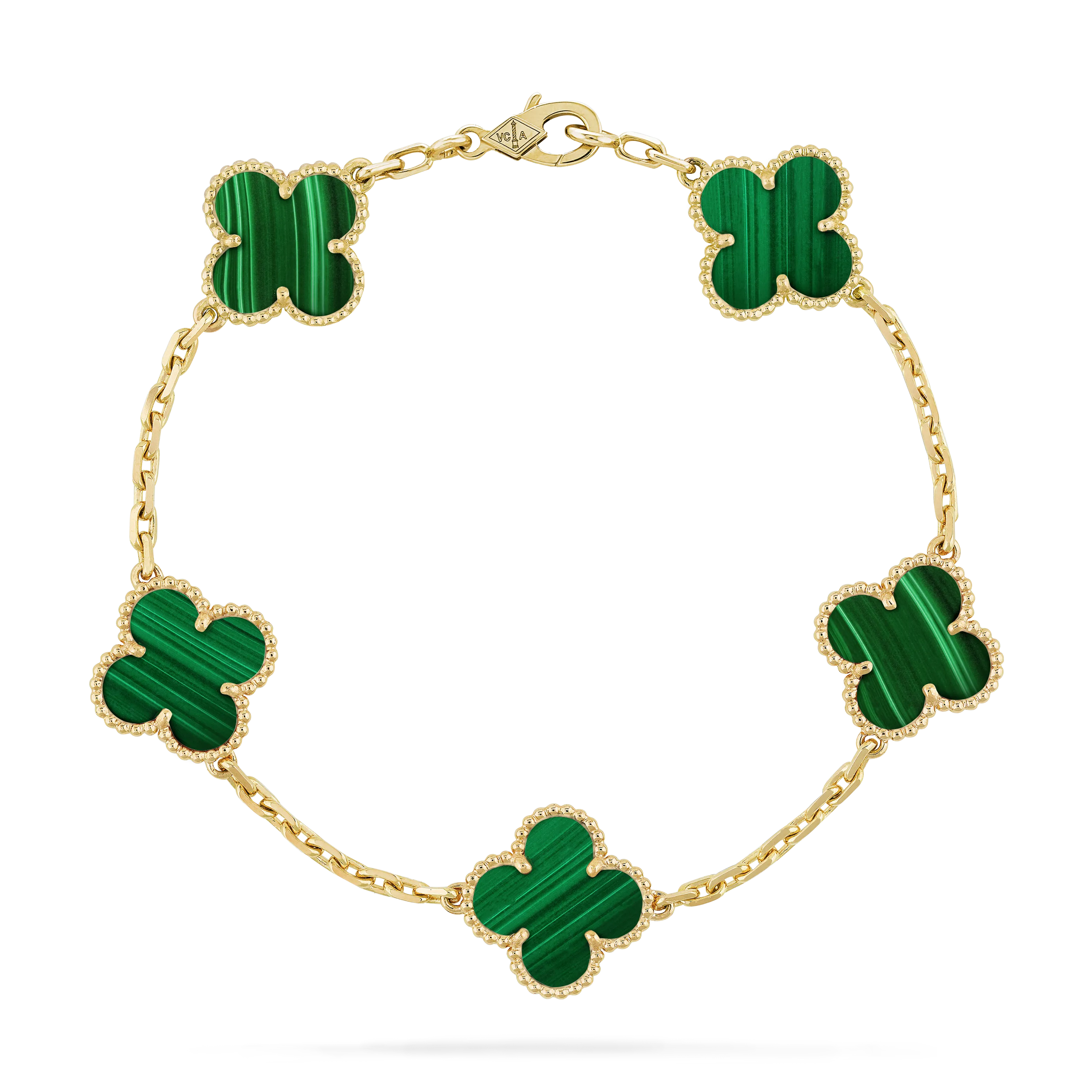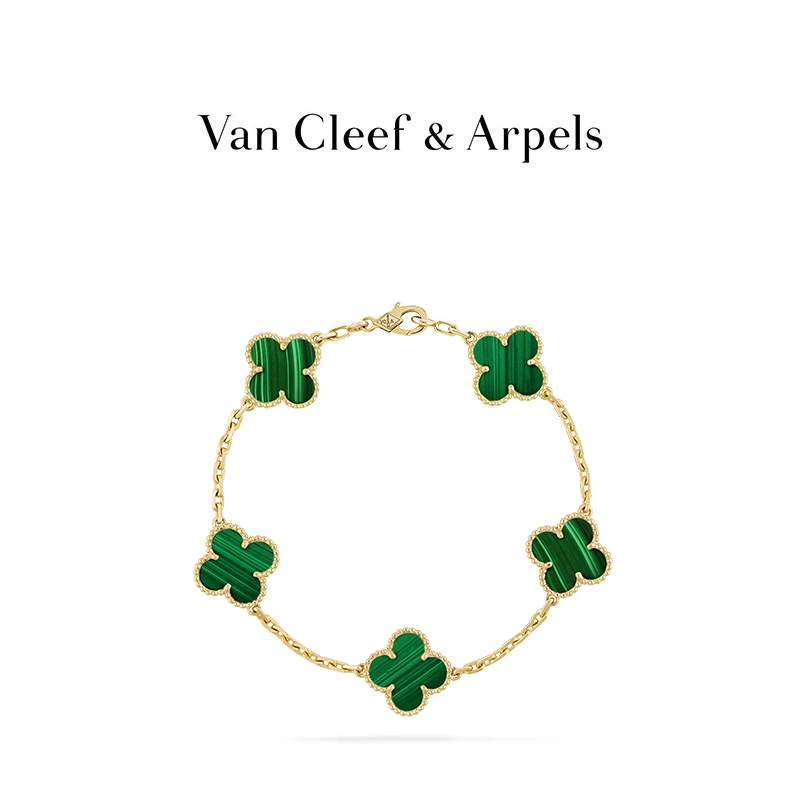 Vintage Alhambra bracelet, 5 motifs, 18K yellow gold, malachite.