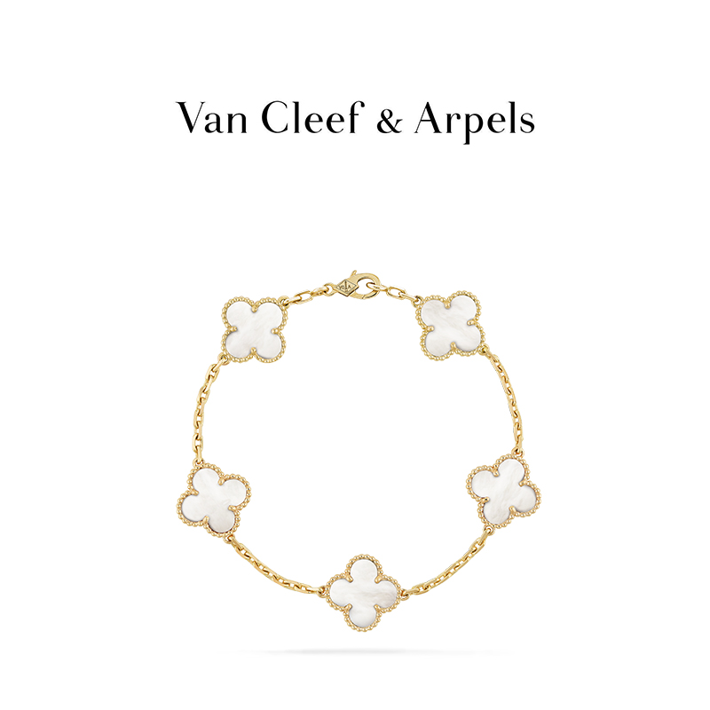Vintage Alhambra bracelet, 5 motifs, 18K yellow gold, white mother-of-pearl.