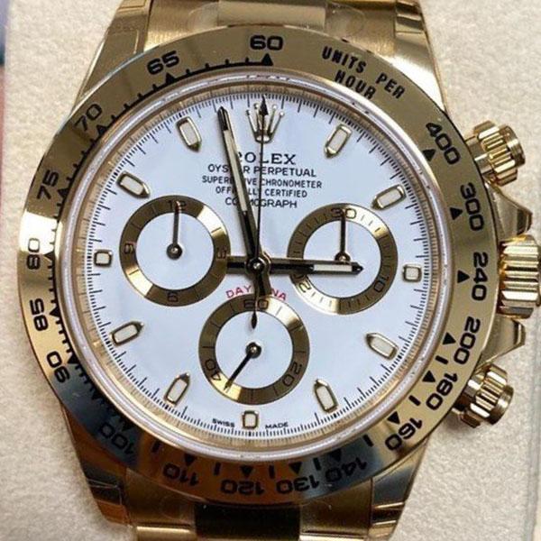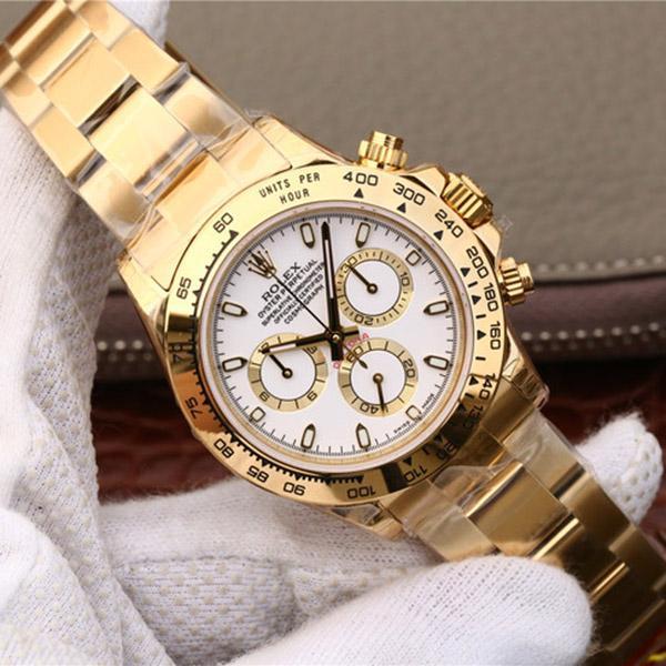 ベゼル:固定式、刻印されたタキメーター、18 ct イエローゴールド